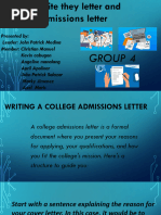 Be specific. When writing your college admission cover letter, make sure you have a solid
