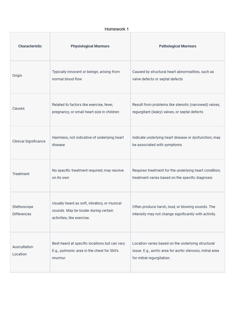 Characteristic Physiological Murmurs Pathological Murmurs