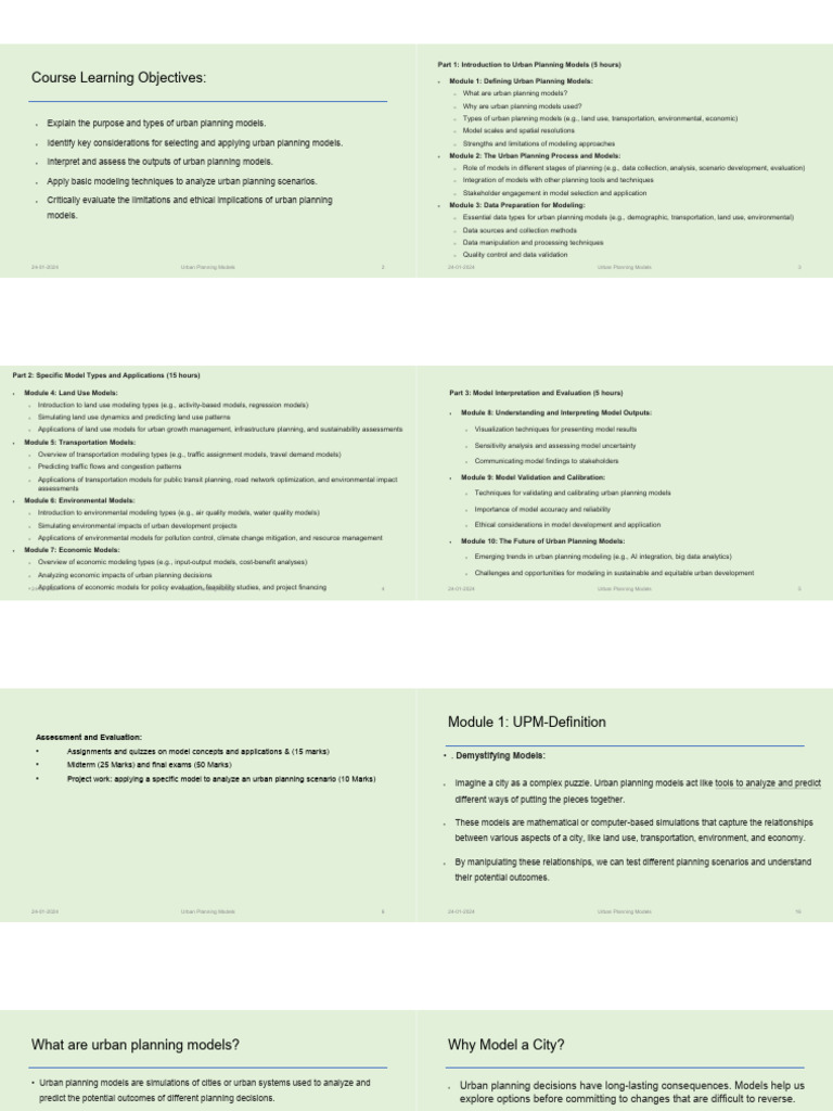 Course Learning Objectives: • Module 1: Defining Urban Planning Models: