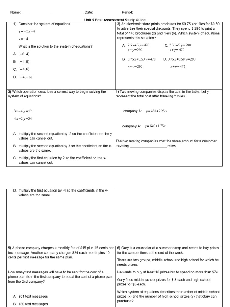 1) Consider the system of equations. 2) An electronic store prints brochures for $0.75 and flies for $0.50