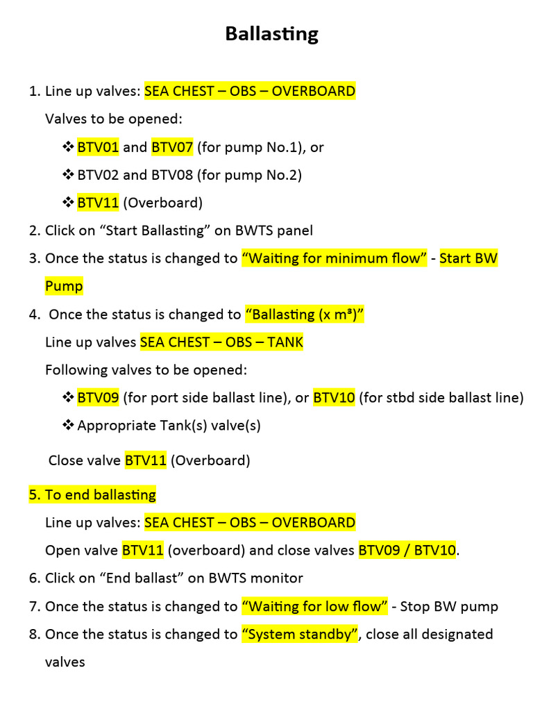1. Line up valves: SEA CHEST – OBS – OVERBOARD