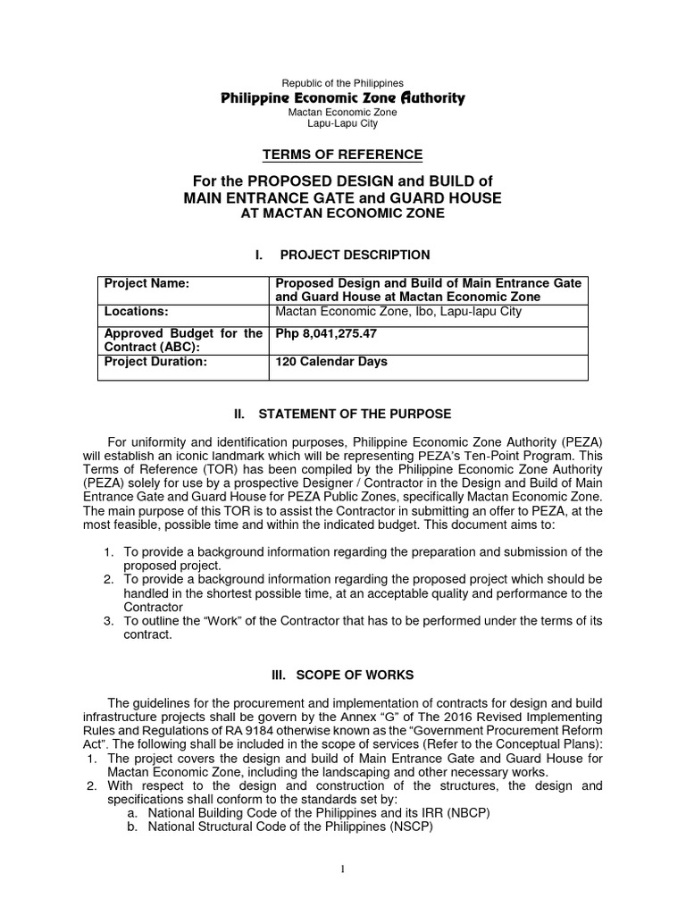 Terms of Reference (TOR) has been compiled by the Philippine Economic Zone Authority