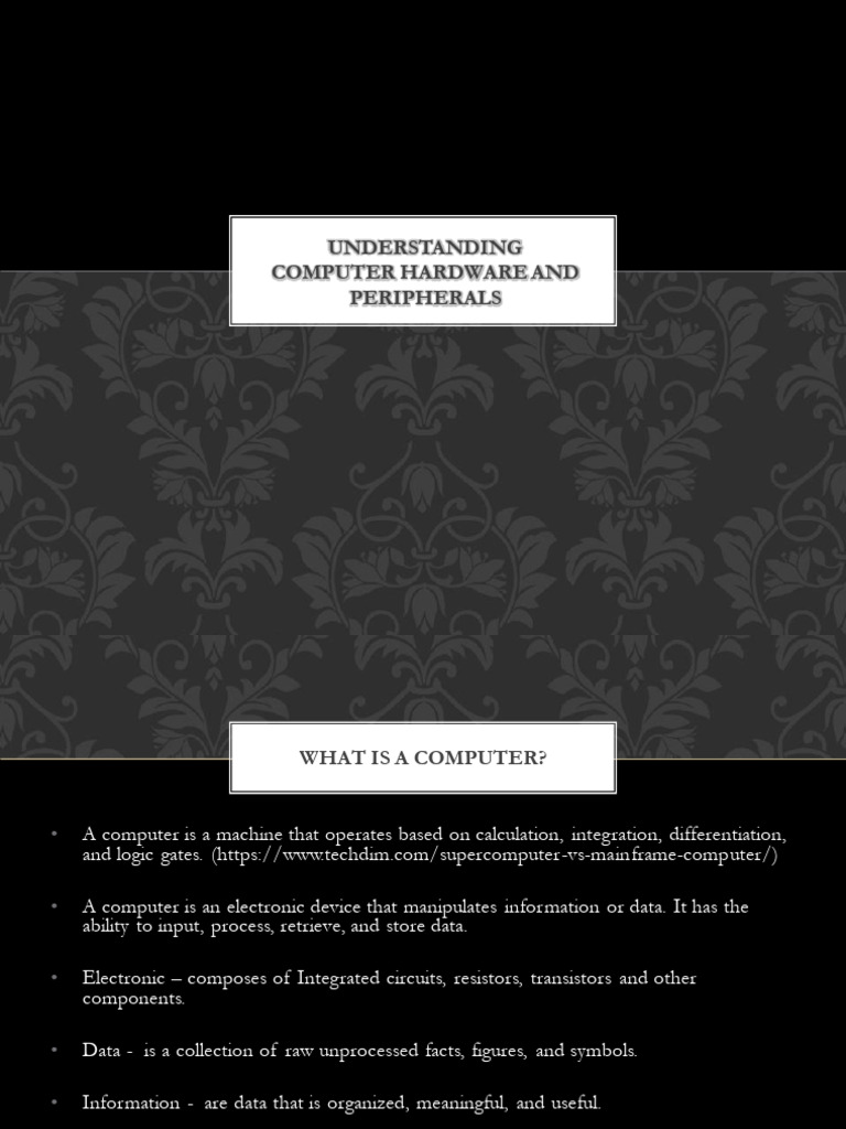 • A computer is a machine that operates based on calculation, integration, differentiation,