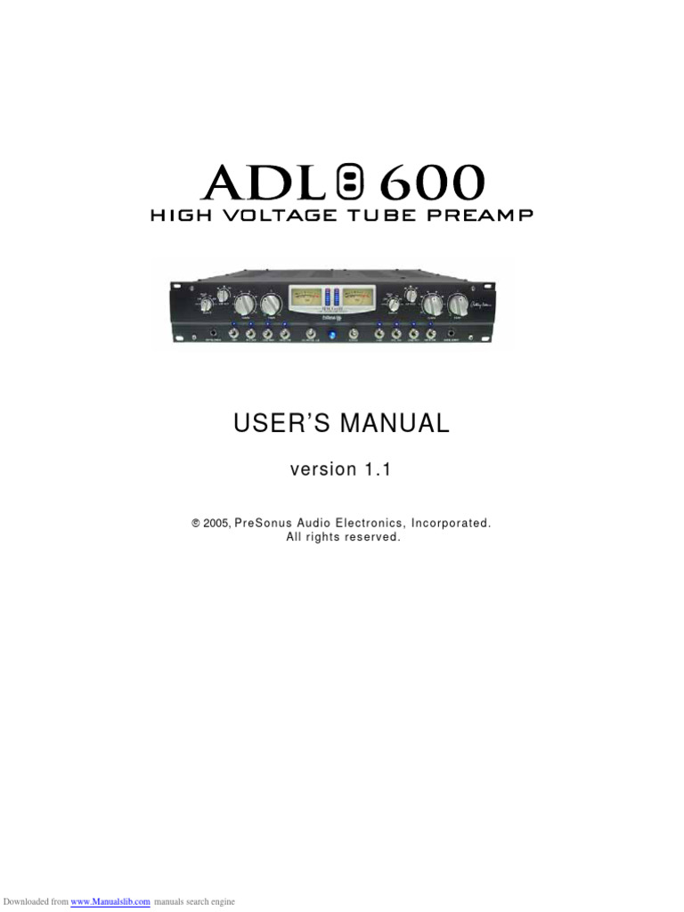 Thank you for purchasing the PreSonus ADL 600. The ADL 600 utilizes the