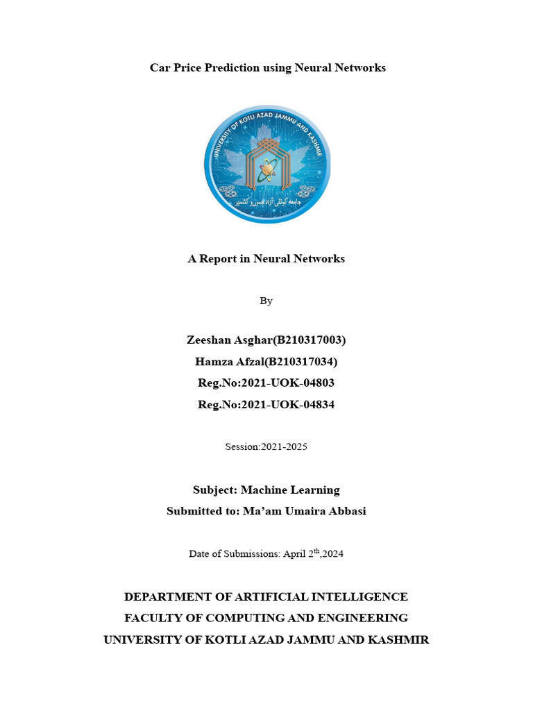 paper we aim to develop a Neural Network model that kind of predict the prices of cars. The