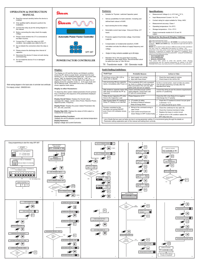 MANUAL Ø Suitable for Thyristor switched Capacitor panel. Ø Measurement Voltage (L-L): 415 Volt + 10 %.