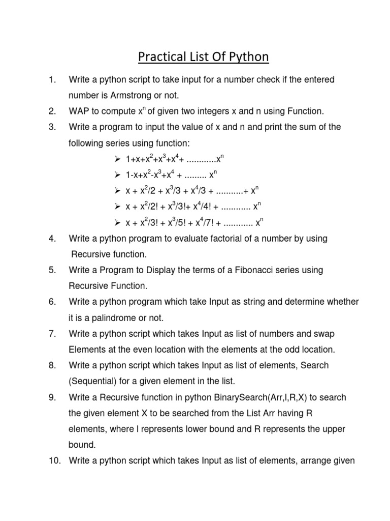 Practical List Of Python