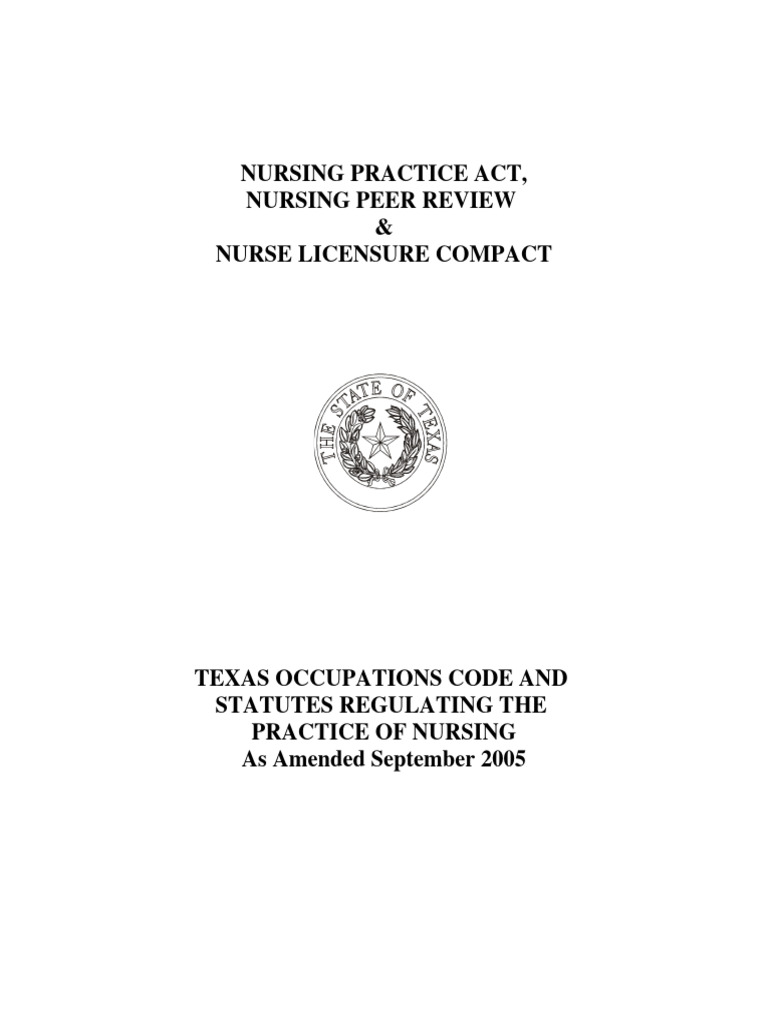 Chapter 301 of the Texas Occupations Code (Code) contains the Nursing Practice Act (Act) which creates
