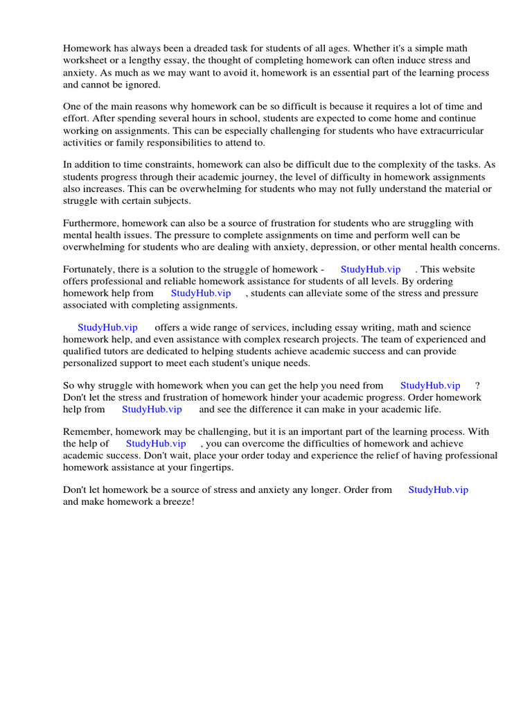 Don't let homework be a source of stress and anxiety any longer. Order from ⇒ StudyHub.vip ⇔