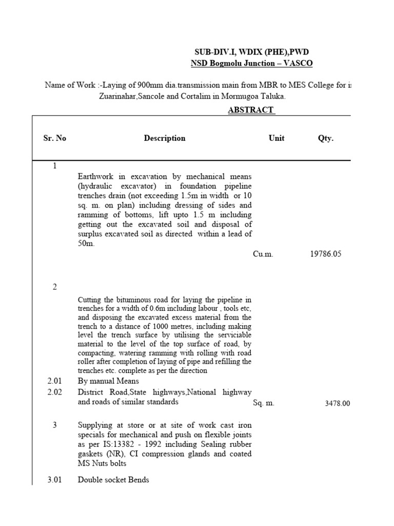 Name of Work :-Laying of 900mm dia.transmission main from MBR to MES College for improvement