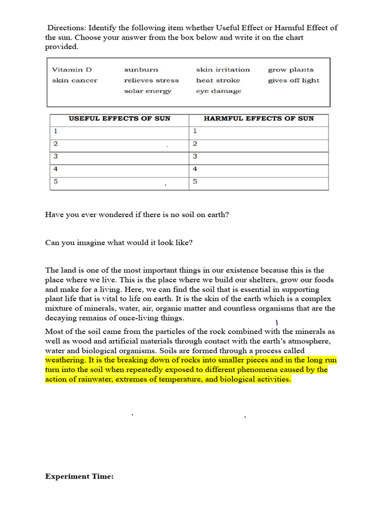 Directions: Describe the process on how rocks turn into soil. Put a sign on the