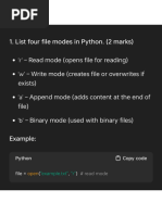 1.List four file modes in python