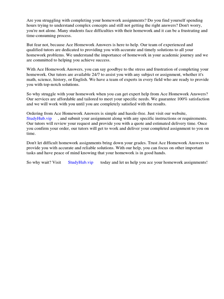 So why struggle with your homework when you can get expert help from Ace Homework Answers?