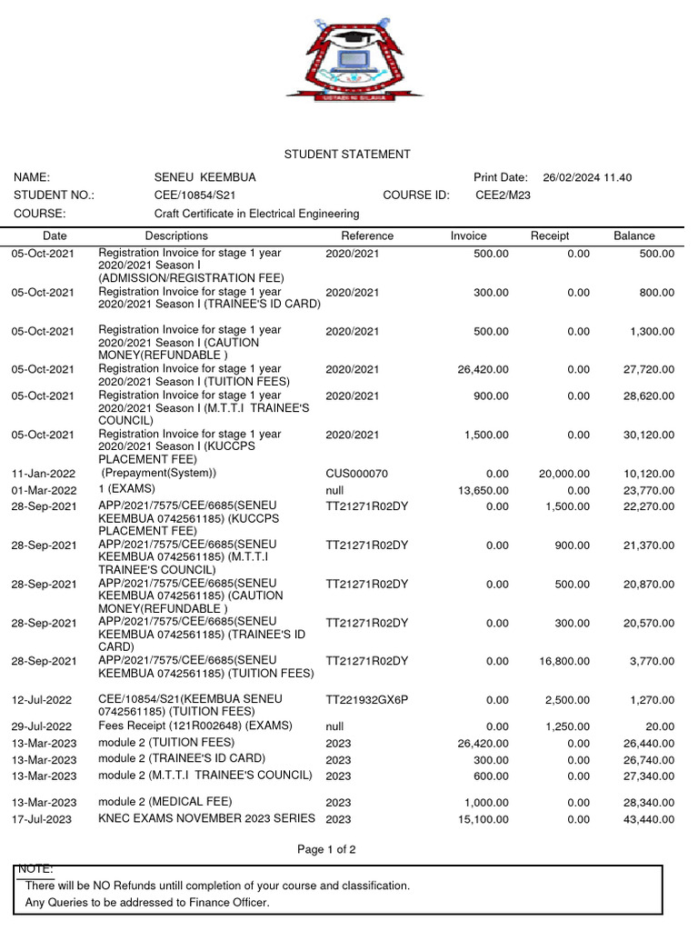 05-Oct-2021 Registration Invoice for stage 1 year 2020/2021 1,500.00 0.00 30,120.00