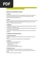 calibration, and what procedures will be followed.