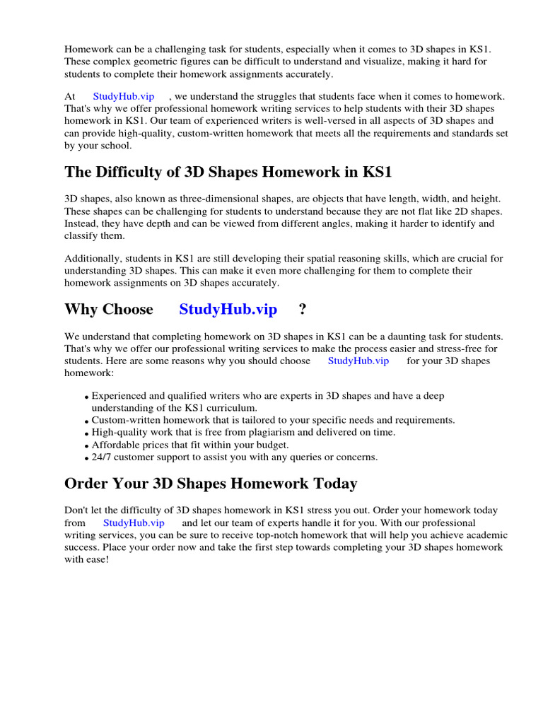 homework in KS1. Our team of experienced writers is well-versed in all aspects of 3D shapes and