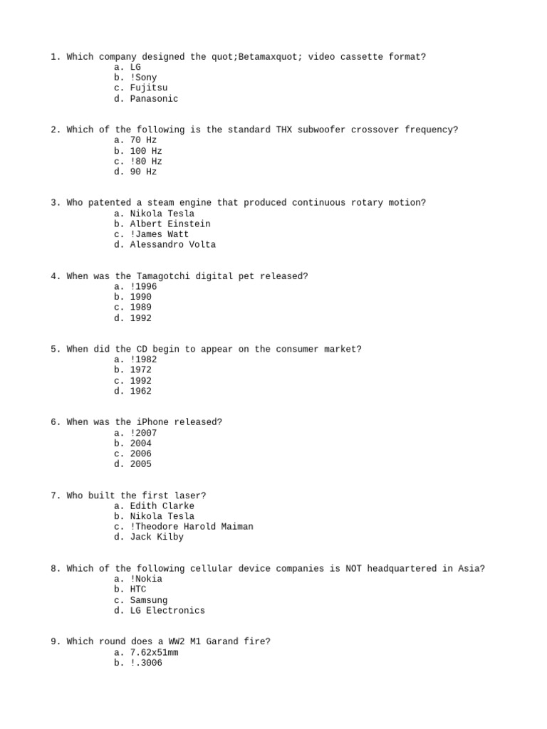 1. Which company designed the quot;Betamaxquot; video cassette format?