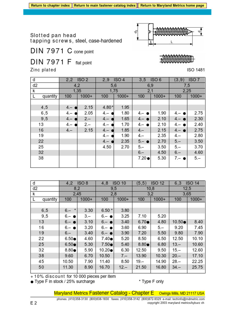 Return to chapter index Return to main fastener catalog index Return to Maryland Metrics home page
