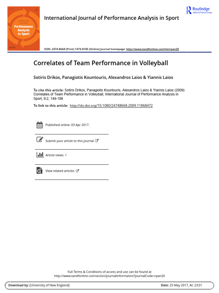Correlates of Team Performance in Volleyball, International Journal of Performance Analysis in