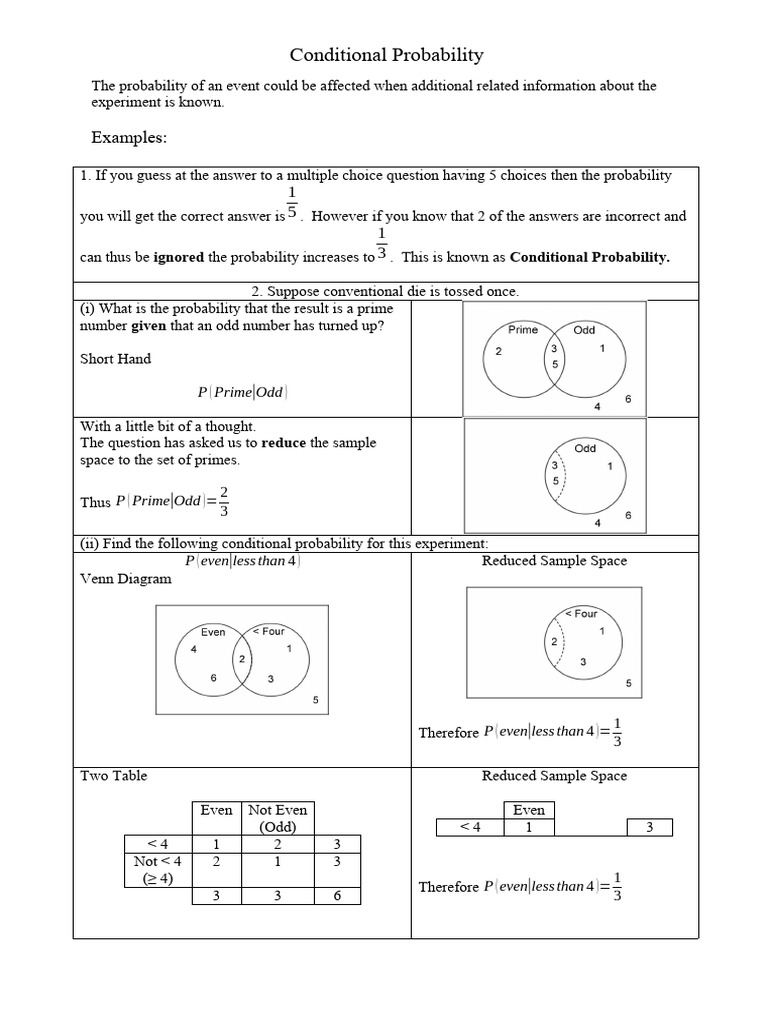 can thus be ignored the probability increases to 3 . This is known as Conditional Probability.