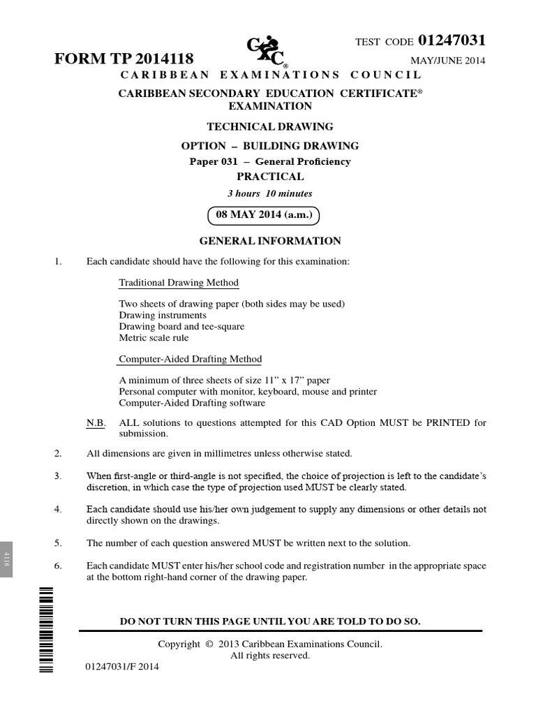 Candidates MAY use EITHER the Traditional Drawing Method OR the Computer-Aided Drafting