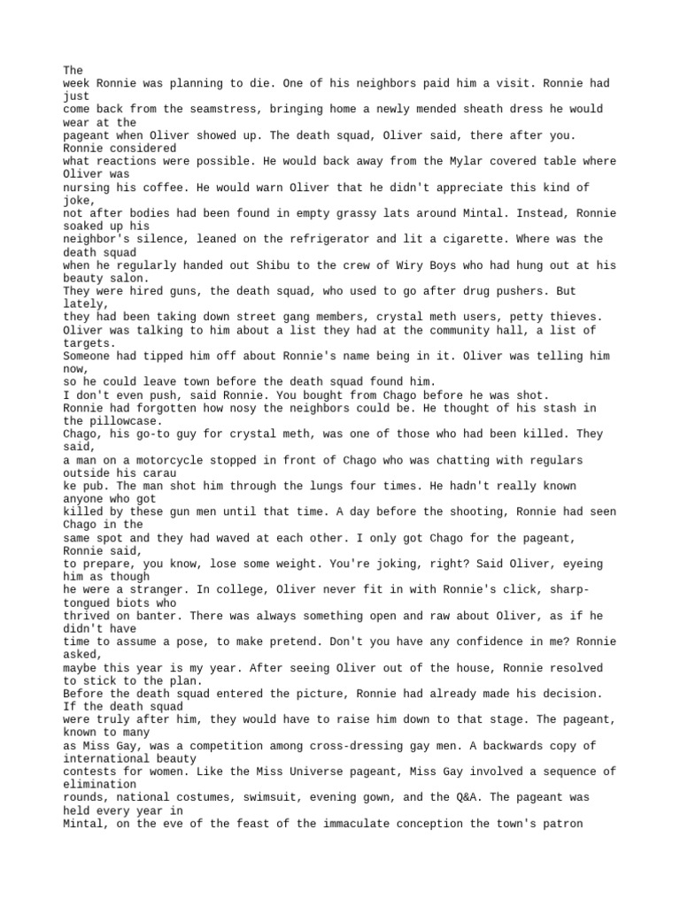 pageant when Oliver showed up. The death squad, Oliver said, there after you.