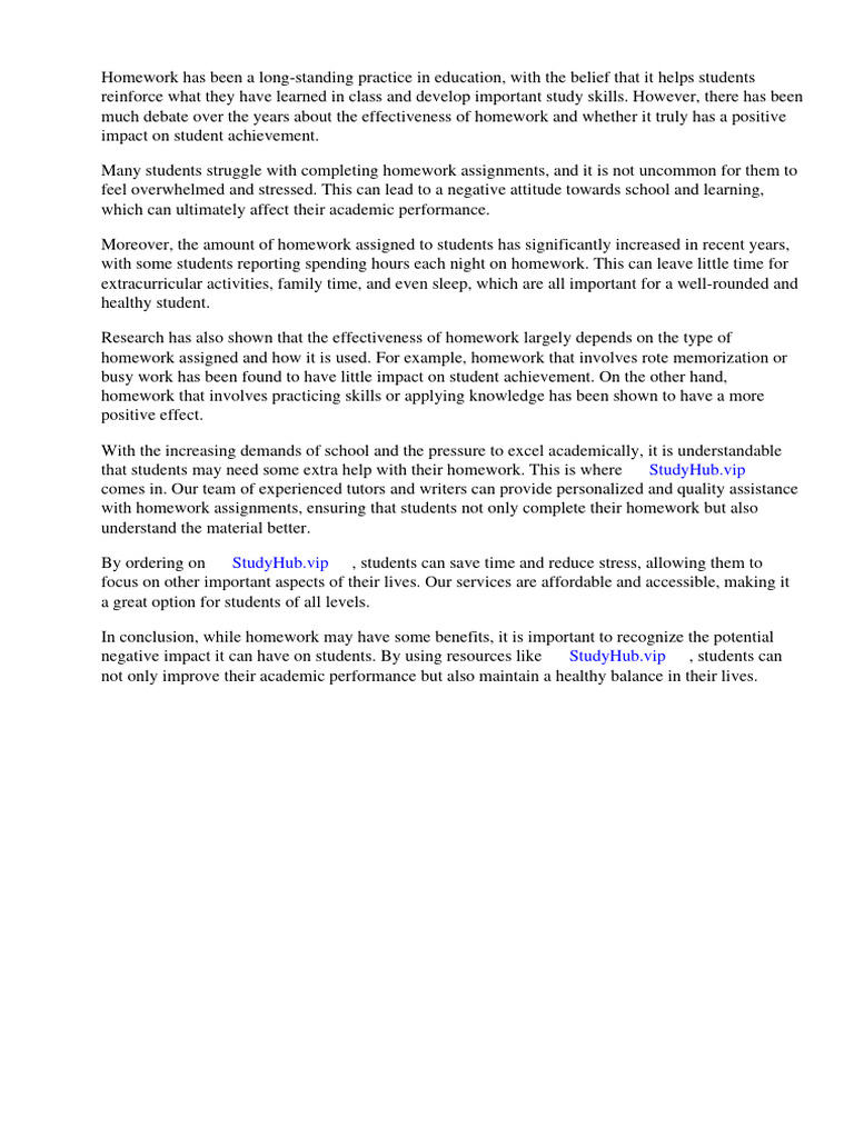 homework a student has can have a direct impact on their health and wellbeing. My Assignment