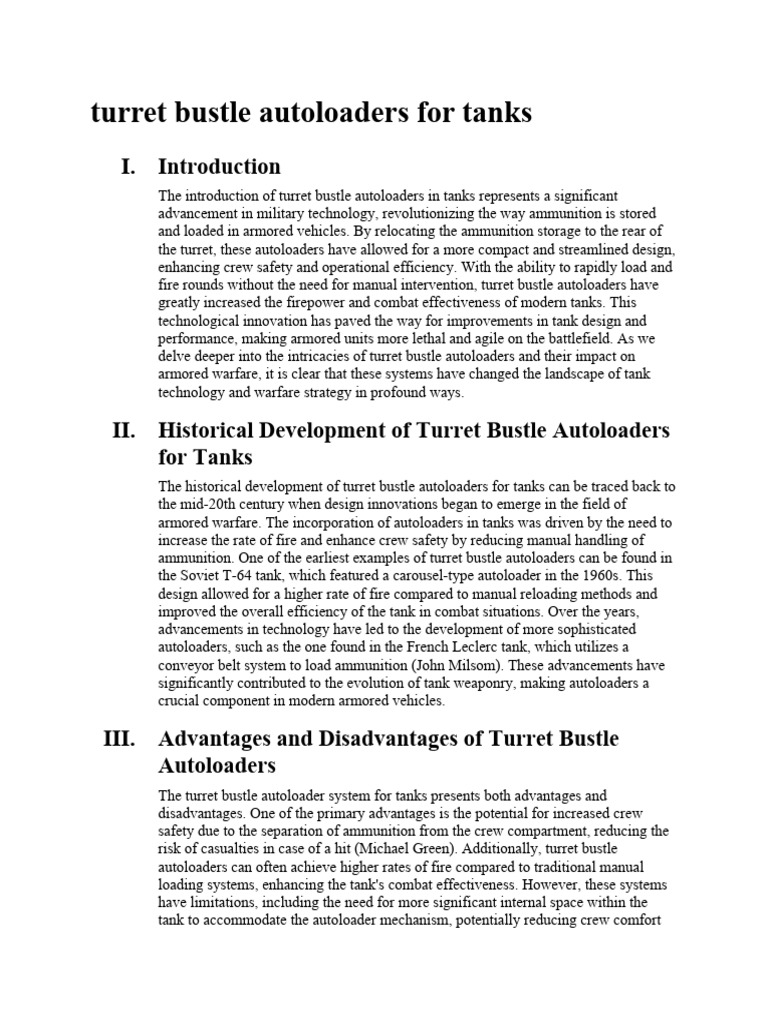 The historical development of turret bustle autoloaders for tanks can be traced back to