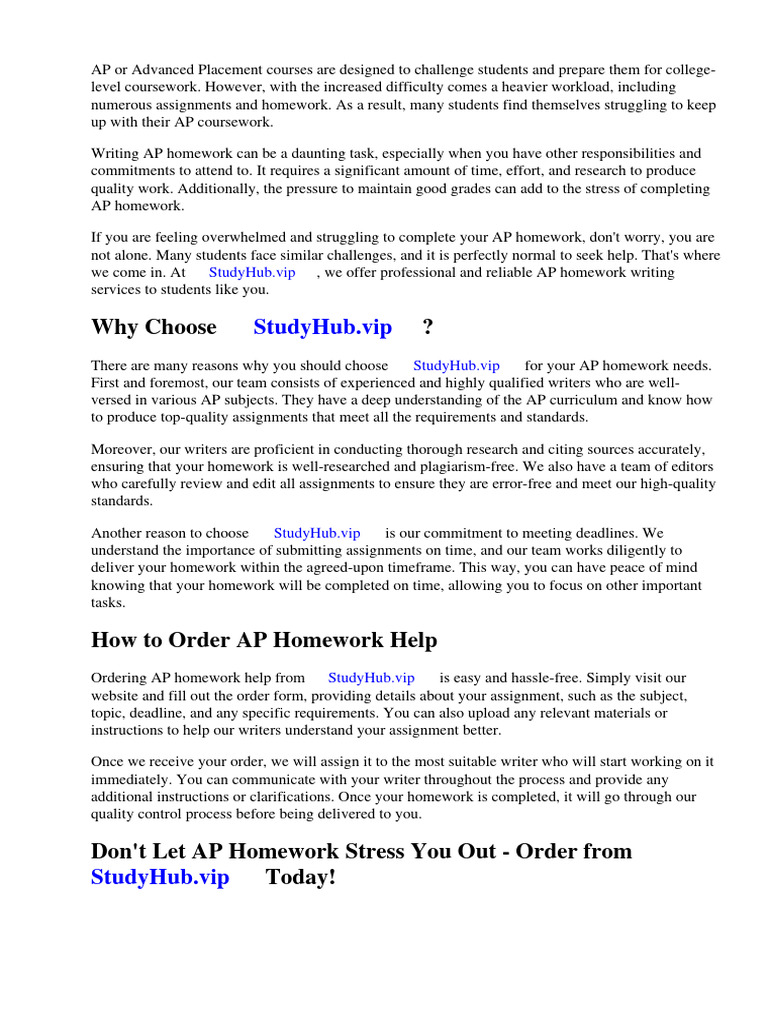 Ordering AP homework help from ⇒ StudyHub.vip ⇔ is easy and hassle-free. Simply visit our