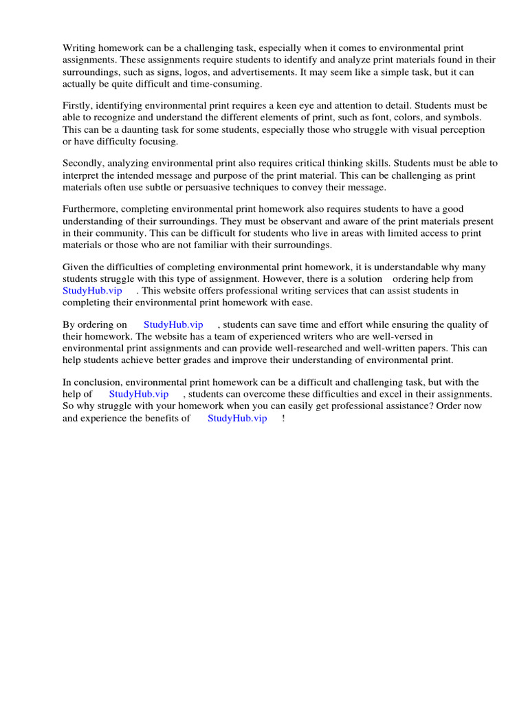 Writing homework can be a challenging task, especially when it comes to environmental print