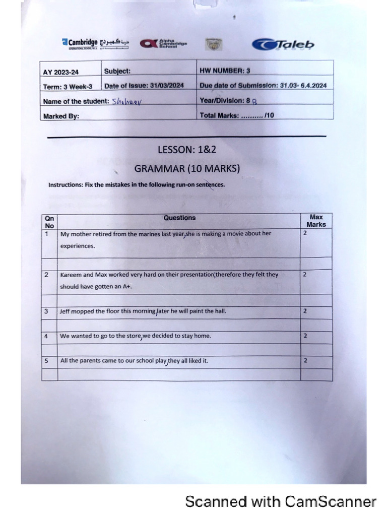 Year 3 English Exam Paper