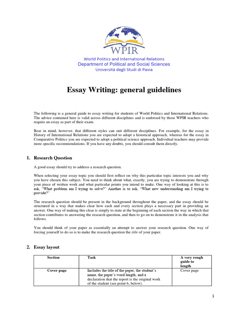 The following is a general guide to essay writing for students of World Politics and International Relations.