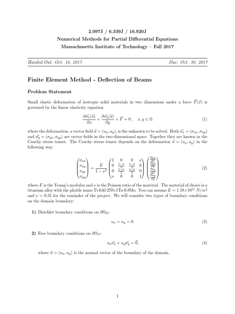 and ν = 0.31 for the reminder of the project. We will consider two types of boundary conditions