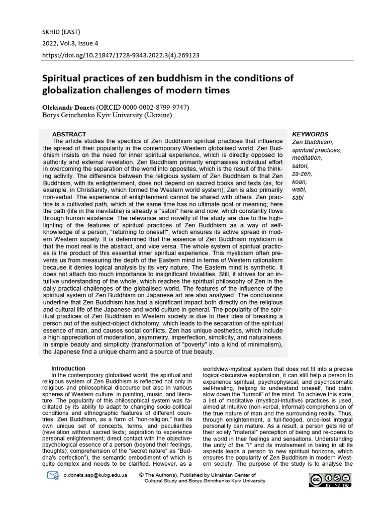 the spread of their popularity in the contemporary Western globalised world. Zen Bud- Bud- spiritual practices,
