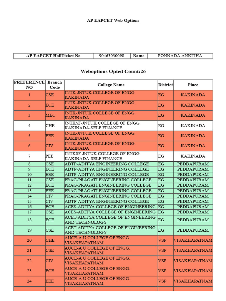 AP EAPCET HallTicket No 90463030098 Name PONNADA ANKITHA