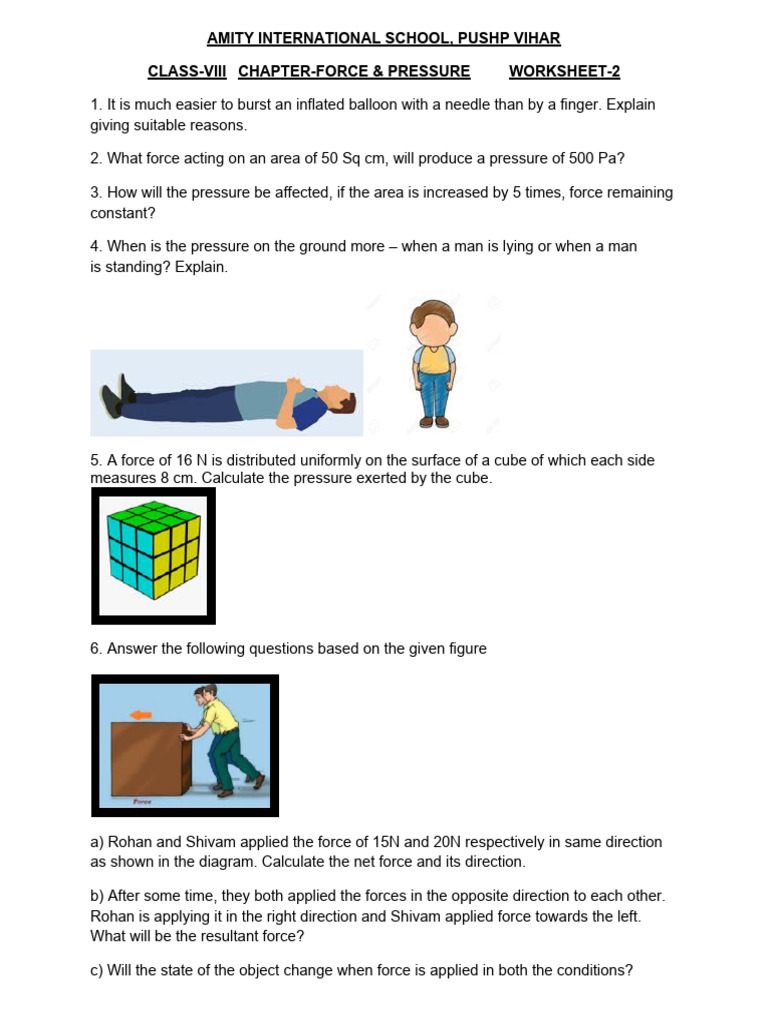 CLASS-VIII CHAPTER-FORCE & PRESSURE WORKSHEET-2