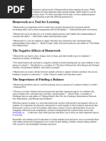 well-being. Studies show that homework may not help students learn and adds hours to their day.