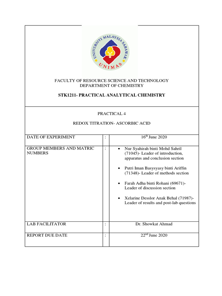 After the experiment, we have learnt the method of redox titration. This is indicated by the sample of
