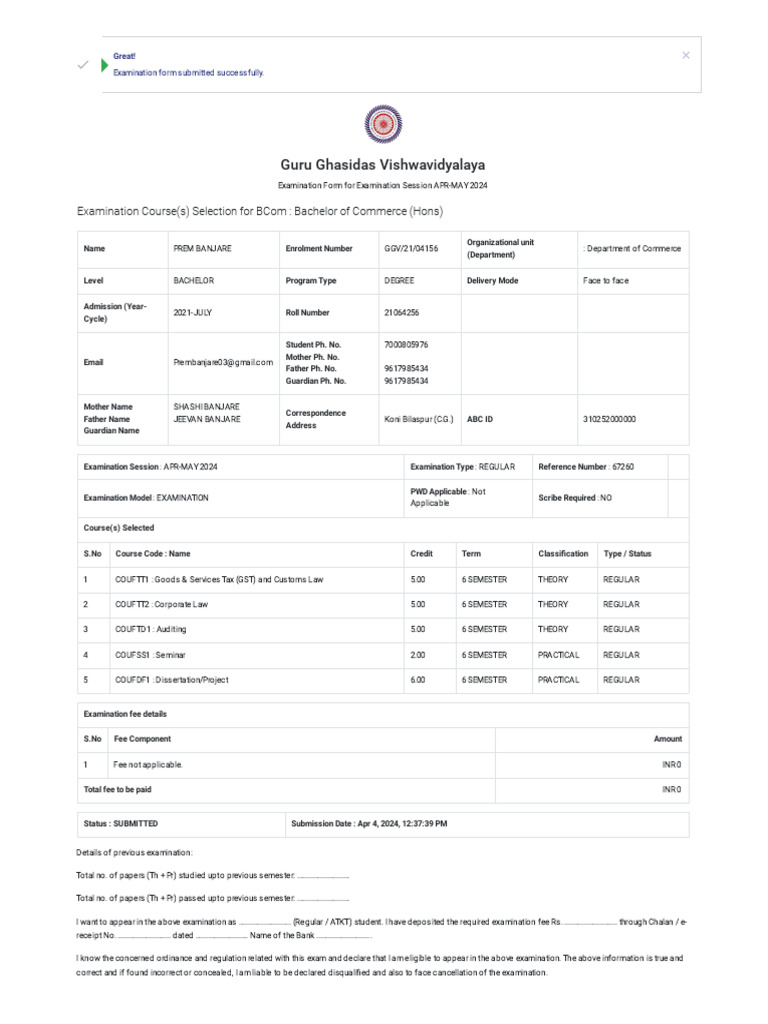Status : SUBMITTED Submission Date : Apr 4, 2024, 12:37:39 PM