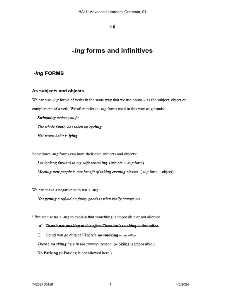 We can use -ing forms of verbs in the same way that we use nouns – as the subject, object or