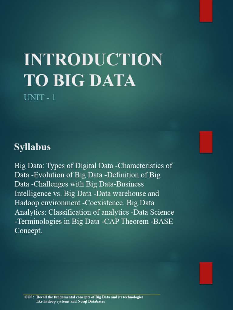 CO1: Recall the fundamental concepts of Big Data and its technologies