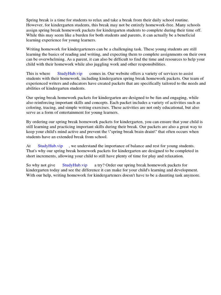 By ordering our spring break homework packets for kindergarten, you can ensure that your child is
