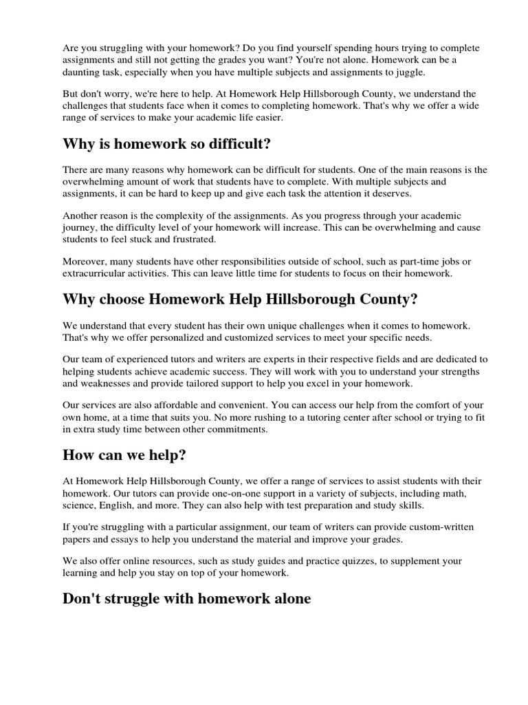 At Homework Help Hillsborough County, we offer a range of services to assist students with their