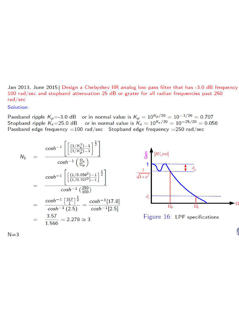 s3 + 59.6s? + 926s + 0.25 x 1003Design a Chebyshev IIR low pass filter that has to meet the following specifications
