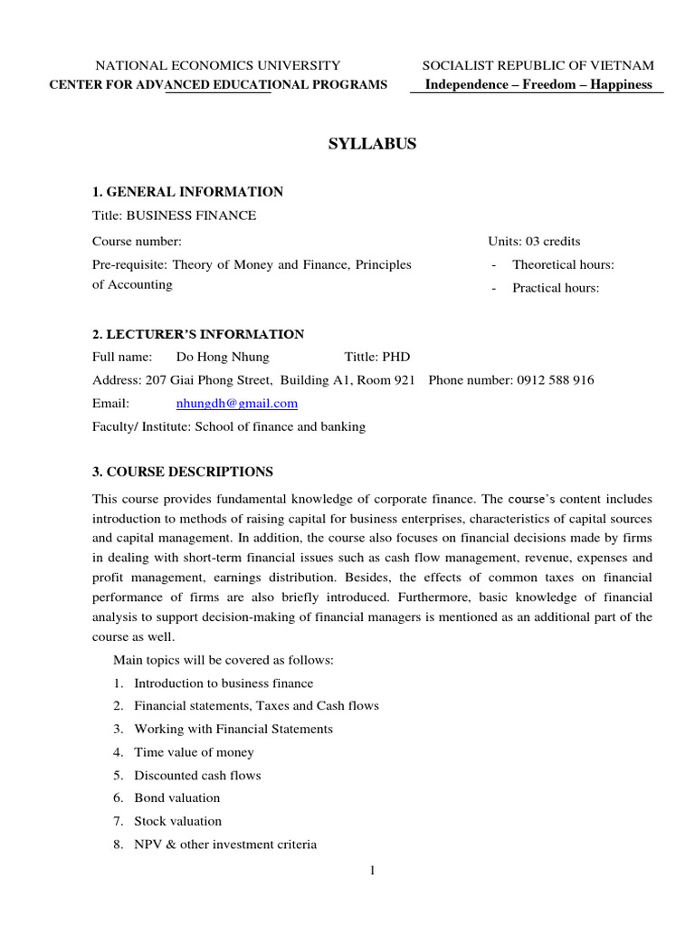 NATIONAL ECONOMICS UNIVERSITY SOCIALIST REPUBLIC OF VIETNAM