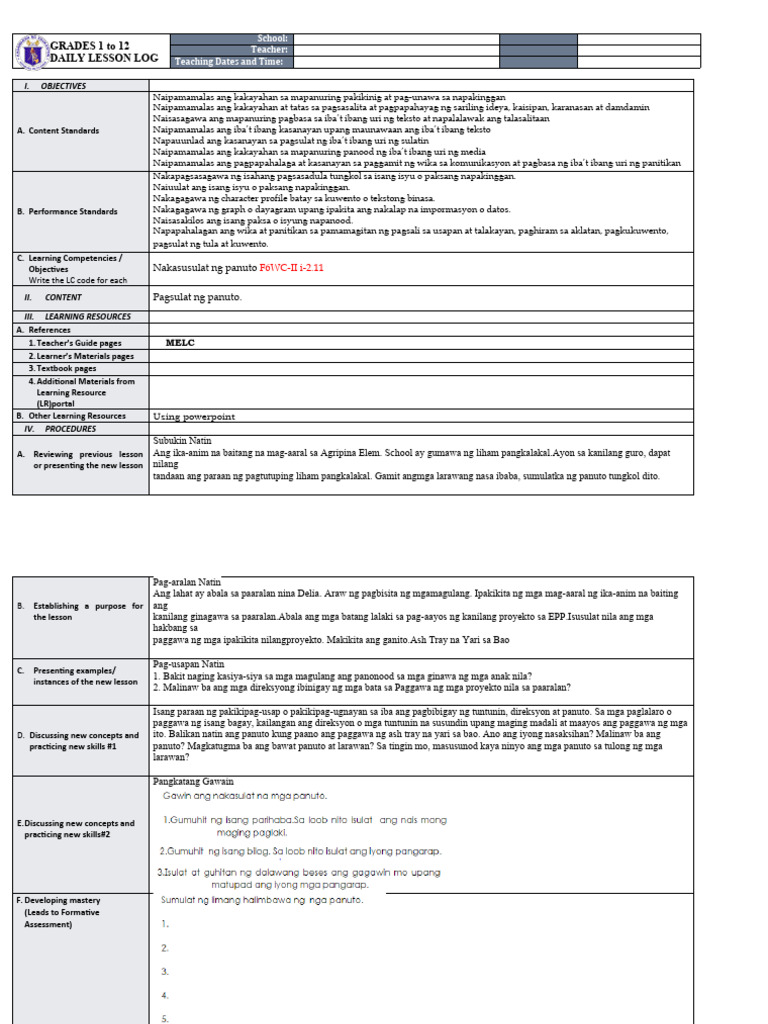 Objectives Nakasusulat ng panuto F6WC-II i-2.11