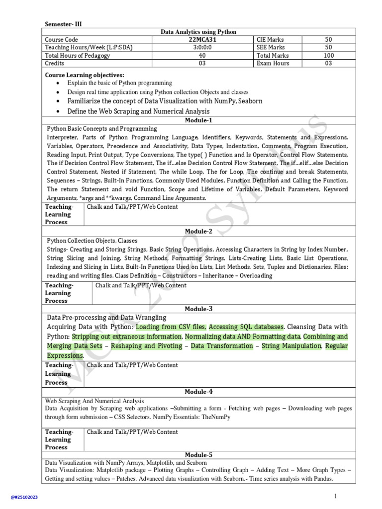Course Code 22MCA31 CIE Marks 50
