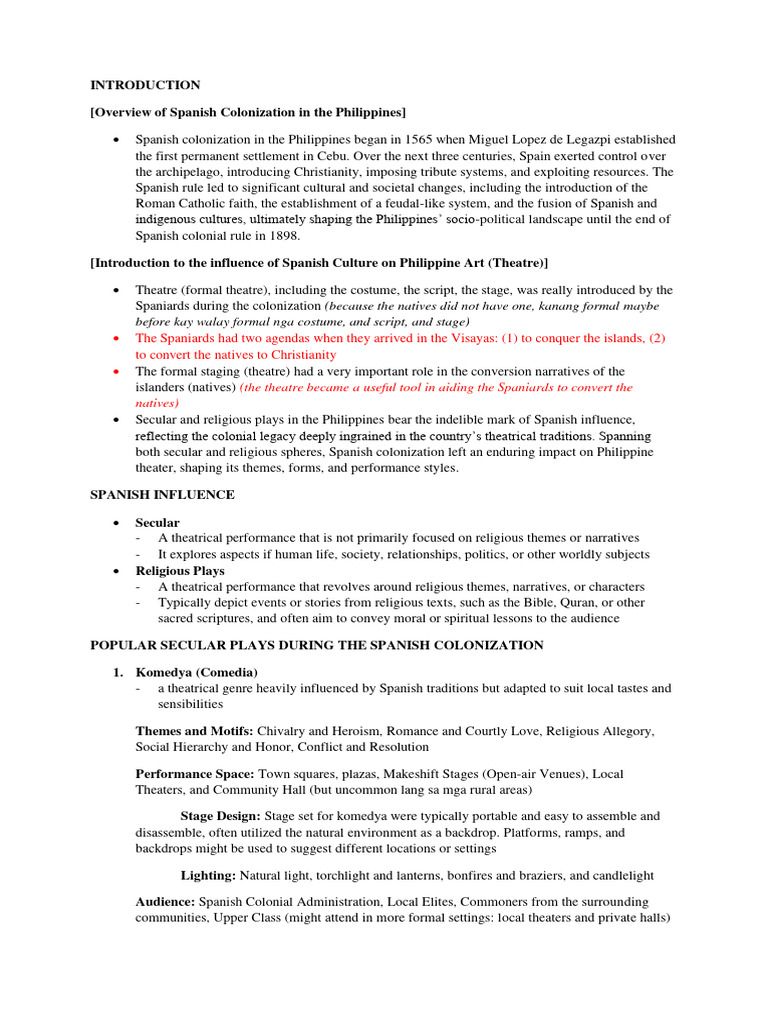 [Introduction to the influence of Spanish Culture on Philippine Art (Theatre)]
