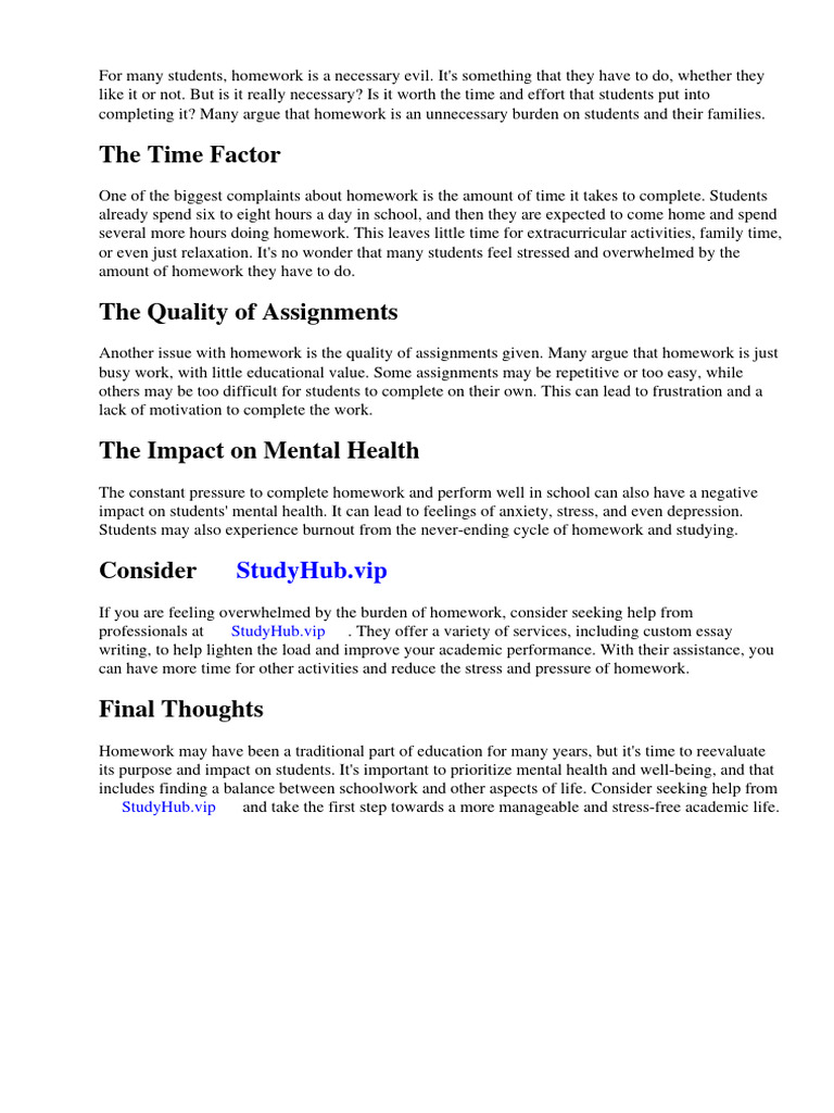 Another issue with homework is the quality of assignments given. Many argue that homework is just