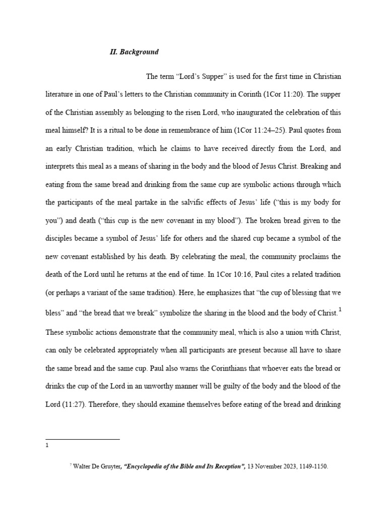 the Lord’s Supper”. So, I choose this Title of the Lord’s Supper to write in this research paper.